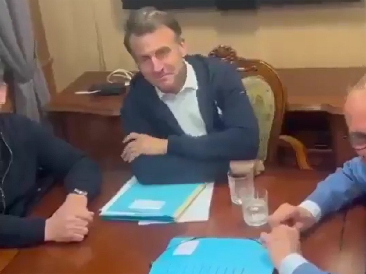 Görüntülerde Macron'un masasındaki beyaz cisimle oynarken göründüğü dikkat çekti.