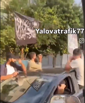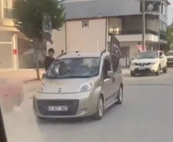 Görüntülerde bayrak siyah zemin üzerine beyaz Arapça, “kelime-i tevhid/şehadet” yazılı olan, Türkiye’de genelde “Tevhid bayrağı” olarak anılan bayraklar yer alıyor.