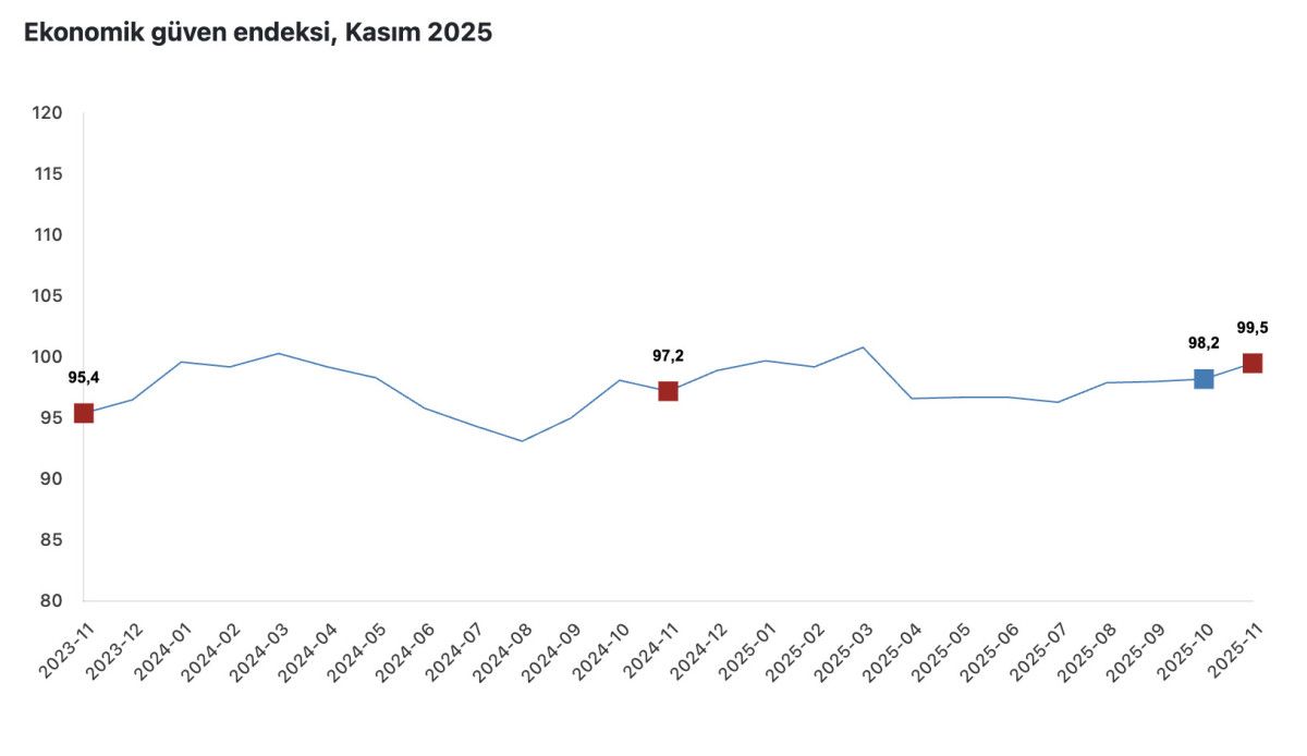 Türkiye İstatistik Kurumu (TÜİK), kasım ayı ekonomik güven endeksini açıkladı.