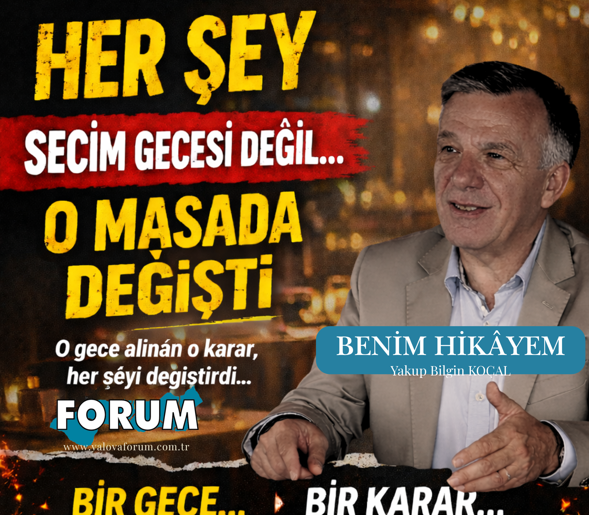 Yakup Koçal bu yazısında, seçim gecesinin heyecanından yola çıkarak aslında aylar önce verilen kritik bir kararın izini sürüyor. Bir düğün salonundaki bekleyişten, kaderi belirleyen bir akşam yemeğine uzanan bu hikâye; yalnızca bir seçimin değil, bir adaylığın nasıl şekillendiğini gözler önüne seriyor.