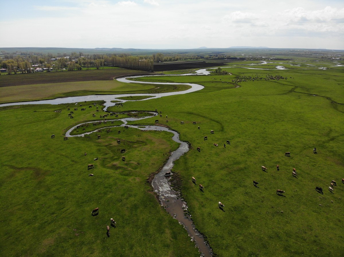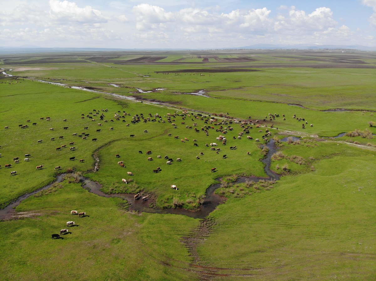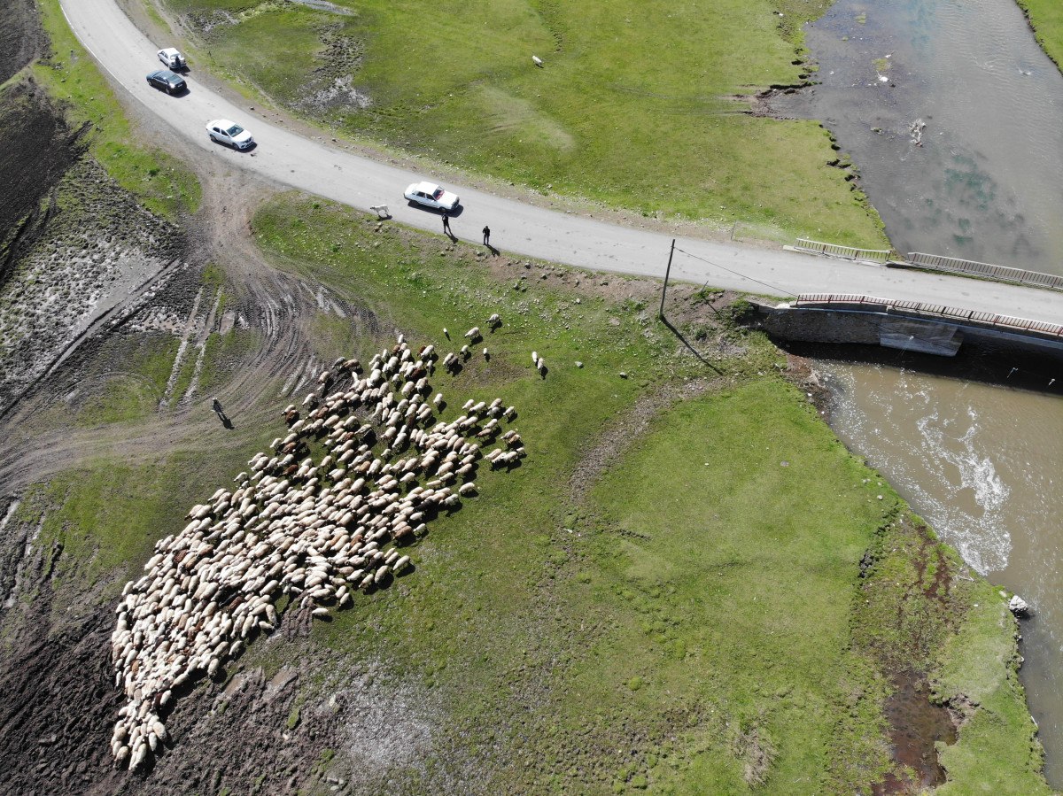 Bahar ayıyla birlikte yeşeren meralarda dolaşan hayvan sürüleri, kameralar tarafından kaydedildi.