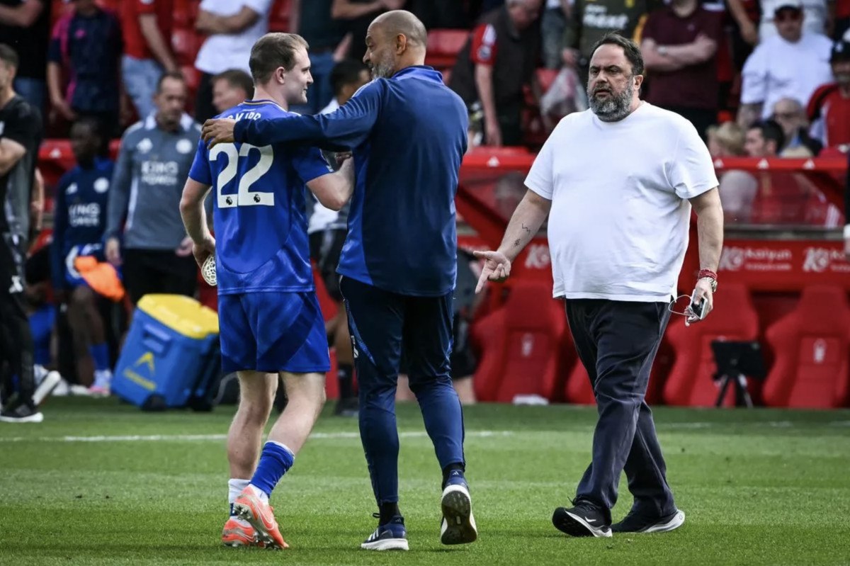 UEFA Avrupa Ligi'nde mücadele etme hakkı kazanan Nottingham Forest'un başkanı Evangelos Marinakis, maç sonunda sahaya indi.