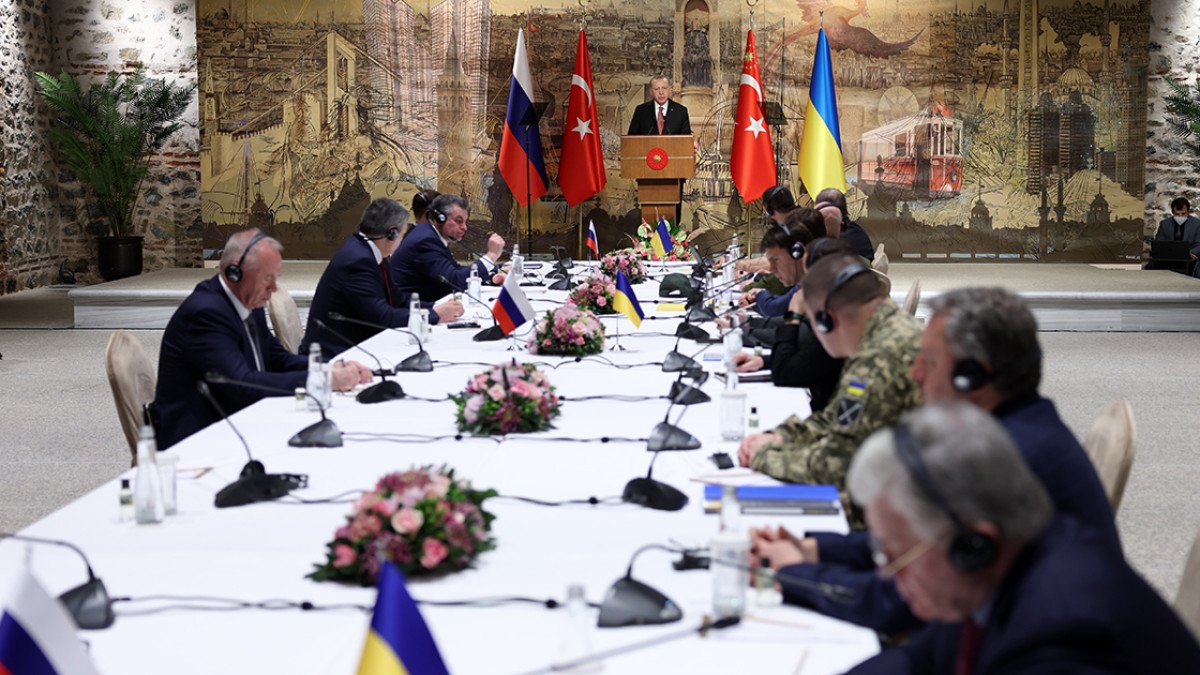 Belarus’ta 3 tur süren görüşmelerden sonra Türkiye’nin yoğun diplomatik çabasıyla 29 Mart 2022’de Rus ve Ukrayna heyetleri, 4. kez İstanbul’da Cumhurbaşkanlığı Dolmabahçe Çalışma Ofisi’nde buluştu.