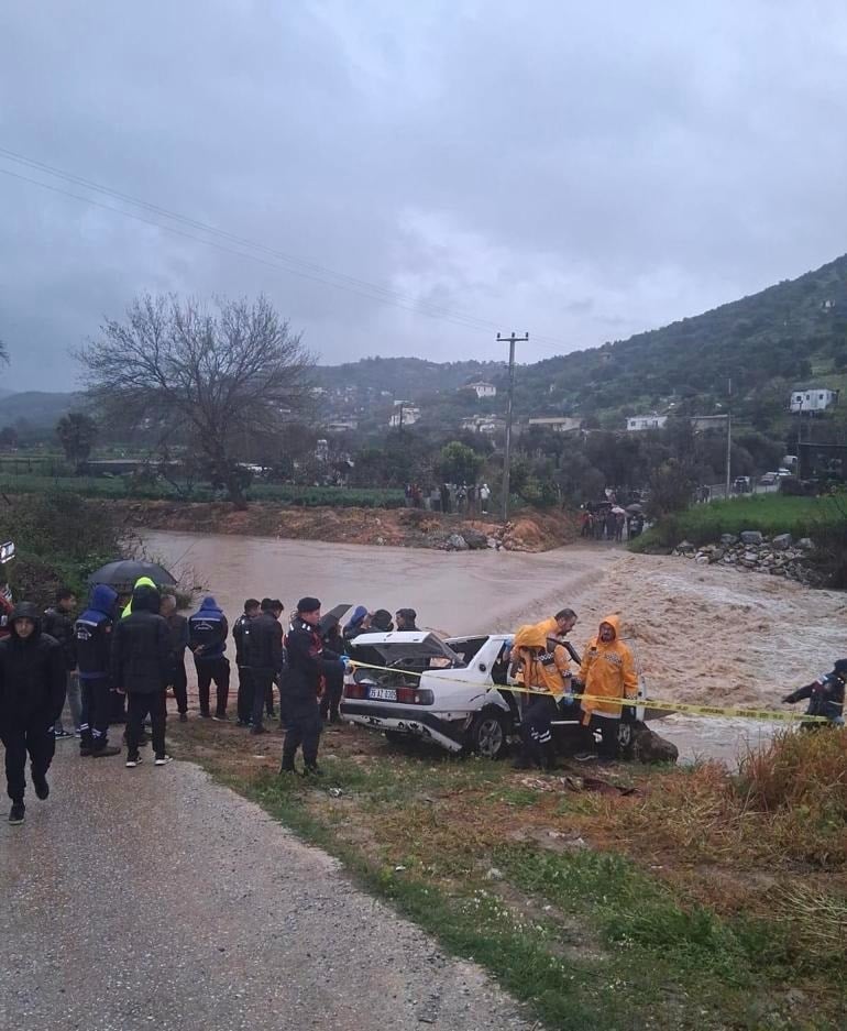 İlçede etkili olan sağanak sonrası, saat 18.00 sıralarında Yaka Mahallesi'nde oluşan sel sularına kapılan ve içerisinde iki kişinin bulunduğu 35 AZ 0305 plakalı otomobil, düştüğü dere yatağında ters döndü.