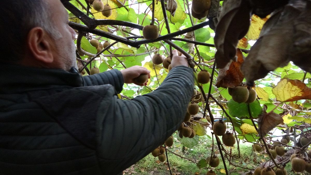 Trabzon’da fındık bahçelerini söküp kivi bahçesine dönüştüren üreticiler, kivi hasadına başladı.