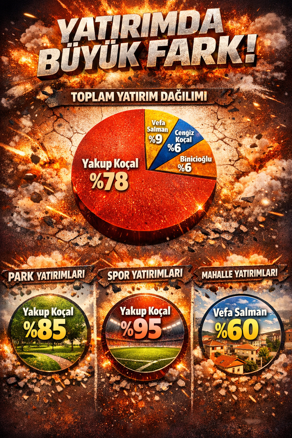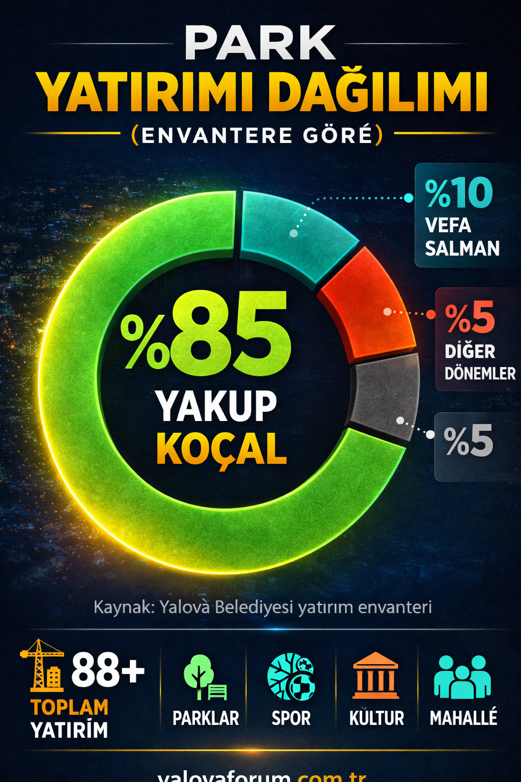 Resmi envanter verilerine göre şehirdeki büyük yatırımların yaklaşık %78’i Yakup Koçal döneminde hayata geçirildi.